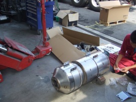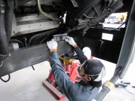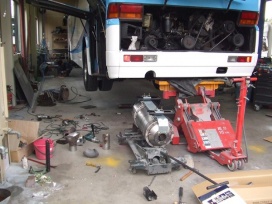 | 取り組みの背景と経緯 | 自動車排出ガスに関する規制等が年々厳しくなってきており、当初は東京だけだったのが平成21年1月1日から大阪も流入規制が始まり、三重県の運送事業者としても、まだまだ使える車を入れ替えることを余儀なくされている。 そこで当社の整備工場で排ガス規制をクリアーするマフラーを取り付け、バス等に延命処理を行うことにした。これが可能になればまだまだ運行できる車両を手放せずに使用できる。 また、中古の車両を購入し、マフラーを取り付け再度、販売する。 これらにより弊社としてのエコ活動に取り組んでいます。 |