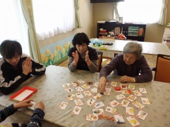 2013年03月01日(金) グループホーム「あんだんて」で、ひな祭り会を行いました。 ホームの職員と利用者様が、一緒にひな祭りを楽しみました。 かるた遊びをした後に、おやつも美味しく皆さんで頂きました。