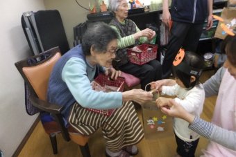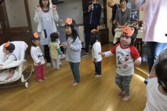〝あんだんて〟のおばあちゃん達と一緒にハロウィンをしました。 体操を見てもらったり、おばあちゃん達におやつをもらいました。