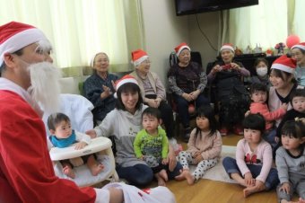 〝あんだんて〟のおばあちゃん達と一緒にクリスマス会をしました。 サンタクロースも来てくれました!