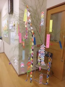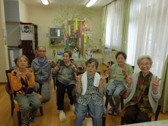 2015年07月07日(火) グループホーム「あんだんて」で、七夕まつりを開催しました。 皆さんのお願い事を書いた短冊を飾ったり、七夕の歌をみんなで歌ったりして少ない時間でしたが七夕を楽しみました。 皆様のお願いが、どうか叶いますように!