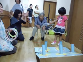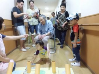 2013年09月18日(水) グループホーム「あんだんて」と保育所「ポコ・ア・ポコ」で、夕涼み会を開催しました。 9月18日 恒例の夕涼み会を行いました。通常は、8月中旬に行うのですが、今年の猛暑は厳しく「秋のおたのしみかい」となりました。当日は、入居者様や園児をはじめ、ご家族、地域の方々がたくさんお集まって頂きました。みんなで、夕食や輪投げ、花火などを行って、残暑もようやく和らいだ、夜のひと時を楽しみました。