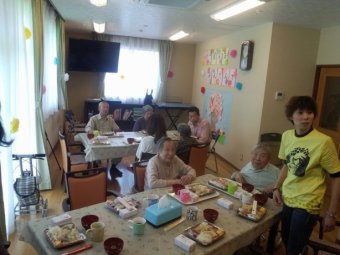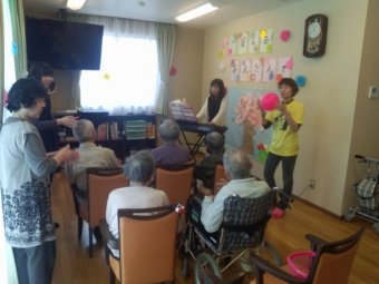 2013年04月16日(火) グループホーム「あんだんて」で、開設1周年記念イベントを行いました。 グループホーム「あんだんて」と、保育所「ポコ・ア・ポコ」の開設1周年イベントを行いました。ビンゴゲームや、キーボードの演奏などをみんなで楽しみ、その後食事会を行いました。