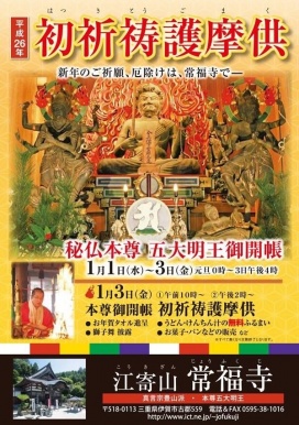 2014年01月03日(金) 平成26年本尊開帳 初祈祷護摩供 今年も、常福寺さまの平成26年本尊開帳、初祈祷護摩供に参加させていただきました。 子ども限定のお菓子のつかみ取り、綿菓子などを行ない、飛び入りのパンダの着ぐるみで子供達に喜んでいただきました。 午後の部にて、弊社の安全祈願を護摩木で誓願を致しました。