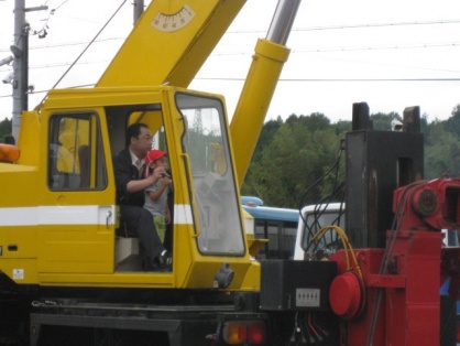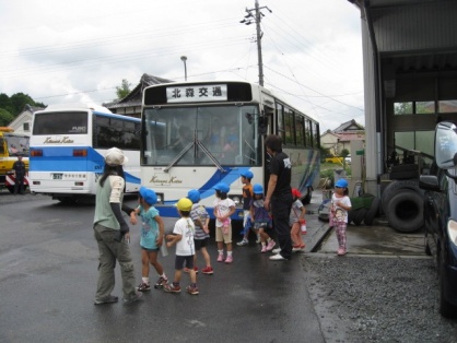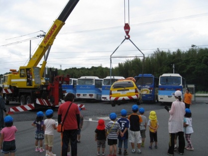 リフト付き観光バスの車内見学、クレーン車への同乗、緊急自動車の見学などを行ってもらいました。