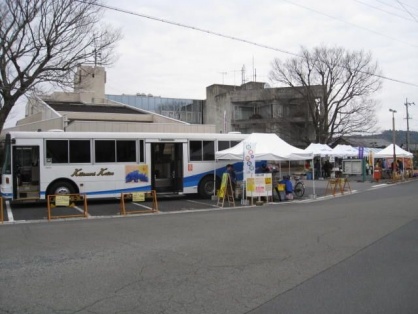 青山地区の地元企業として、リフト付きバスの展示、会場の警備、お菓子の販売などを、協力させていただきました。