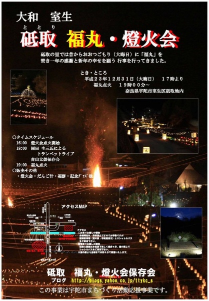2011年12月31日(土) 砥取の福丸・燈花会に参加させて頂きました。 毎年、弊社の年末最終の締めくくり業務として、貸切バス、警備員とも参加させて頂いております。砥取地区の皆さんが一丸となって運営されている、素晴らしい伝統行事です。