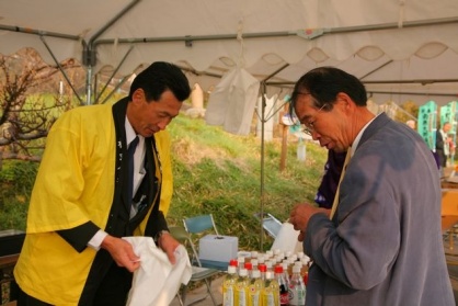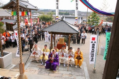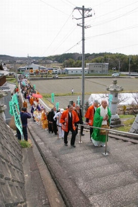 2011年04月03日(日) 伊賀四国八十八ヶ霊場 開創150周年記念開白法要 4月3日に常福寺にて行われました、開創150周年記念開白法要に参加させて頂きました。会場の設営、行列の後方警備及び会場警備、シャトルバスの運行、会奉行の僧侶様の傘持ち、出店および写真撮影のお手伝いをさせて頂きました。